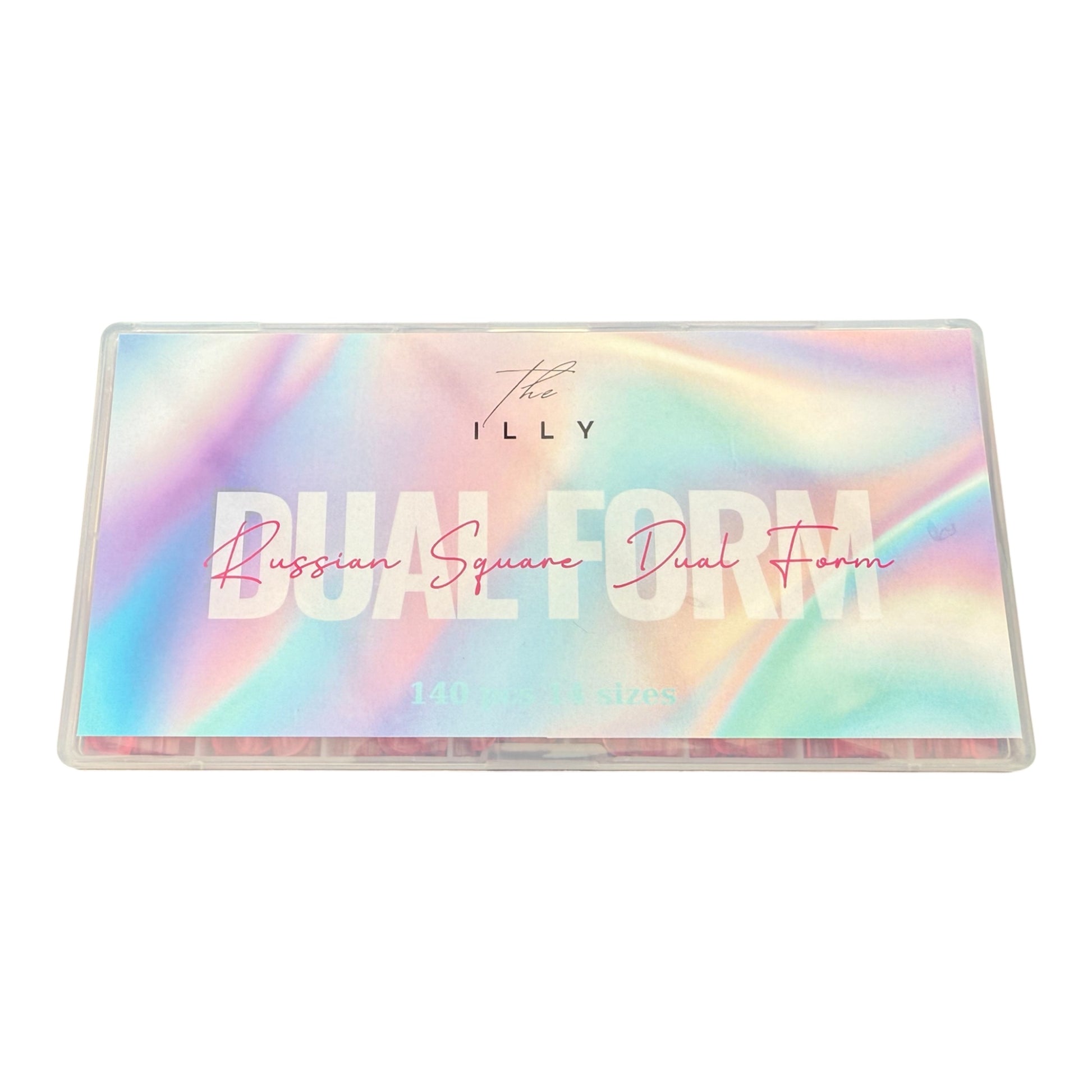 Achieve flawless nail extensions with the Dual Form Russian Square set from the ILLY – designed for precision, speed, and a salon-perfect finish. Each box includes 140 reusable dual forms in 14 different sizes, neatly packed in a sleek, iridescent-labeled case.